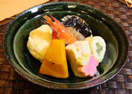 また、冷凍対応ができないお惣菜については、実店舗にてご購入・お食事が可能です。下の写真のお惣菜は、冷凍対応ができない豆房のお惣菜です。店舗へご来店頂ける方は、是非、豆房の豆腐だけでなく、お惣菜もご賞味下さい。