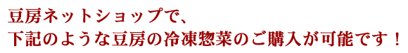 惣菜においても冷凍対応が可能な「お惣菜」については、豆房ネットショップにて冷凍惣菜として販売しております。